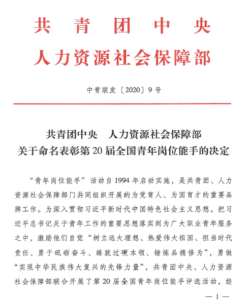 喜報 | 熱烈祝賀法士特青年郝海洋榮獲“全國青年崗位能手”稱號